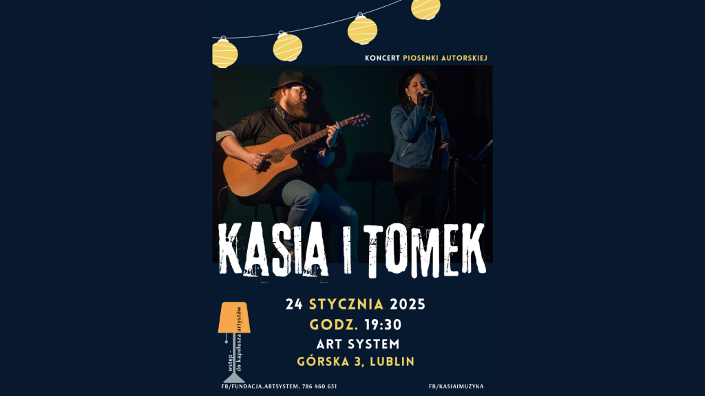 Duet Kasia i Tomek ponownie wystąpi na scenie Fundacji ArtSystem! Ich wcześniejszy koncert spotkał się z dużym zainteresowaniem publiczności poprzez zapewnienie kameralnej atmosfery, sprzyjającej bliskiemu kontaktowi z artystami.