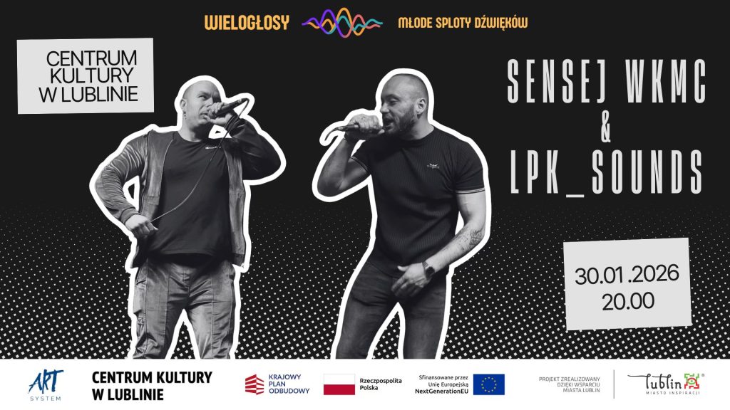 Zapraszamy na koncert duetu SENSEJ WKMC & LPK_SOUNDS, który łączy rap z żywymi instrumentami i śpiewem. Ich muzyka wyrasta z hip-hopu, jednak swobodnie wychodzi poza gatunkowe ramy, łącząc klasyczne brzmienia z nowoczesnym podejściem do formy.