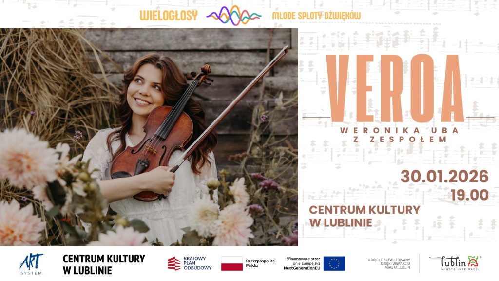 Zapraszamy na koncert, podczas którego wystąpi VEROA wraz z zespołem. Artystka jest wokalistką, skrzypaczką i kompozytorką. W swojej muzyce łączy akustyczne instrumenty ze współczesnym, elektronicznym brzmieniem. Dzięki temu tworzy klimat indie popu z wyraźną, osobistą narracją.