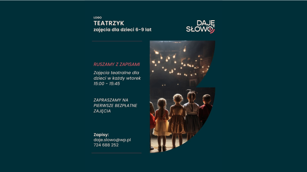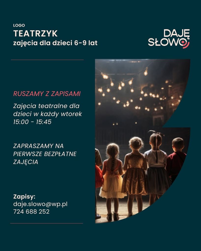 Nowa współpraca, nowe możliwości! Z radością ogłaszamy, że Fundacja ArtSystem rozpoczyna współpracę z DAJĘ SŁOWO Centrum Artystyczne Marty Ledwoń. Dzięki niej w naszej Przestrzeni startuje wyjątkowy cykl dla najmłodszych – LOGOTEATRZYK – zajęcia teatralno-logopedyczne, które wspierają rozwój językowy i komunikacyjny dzieci.