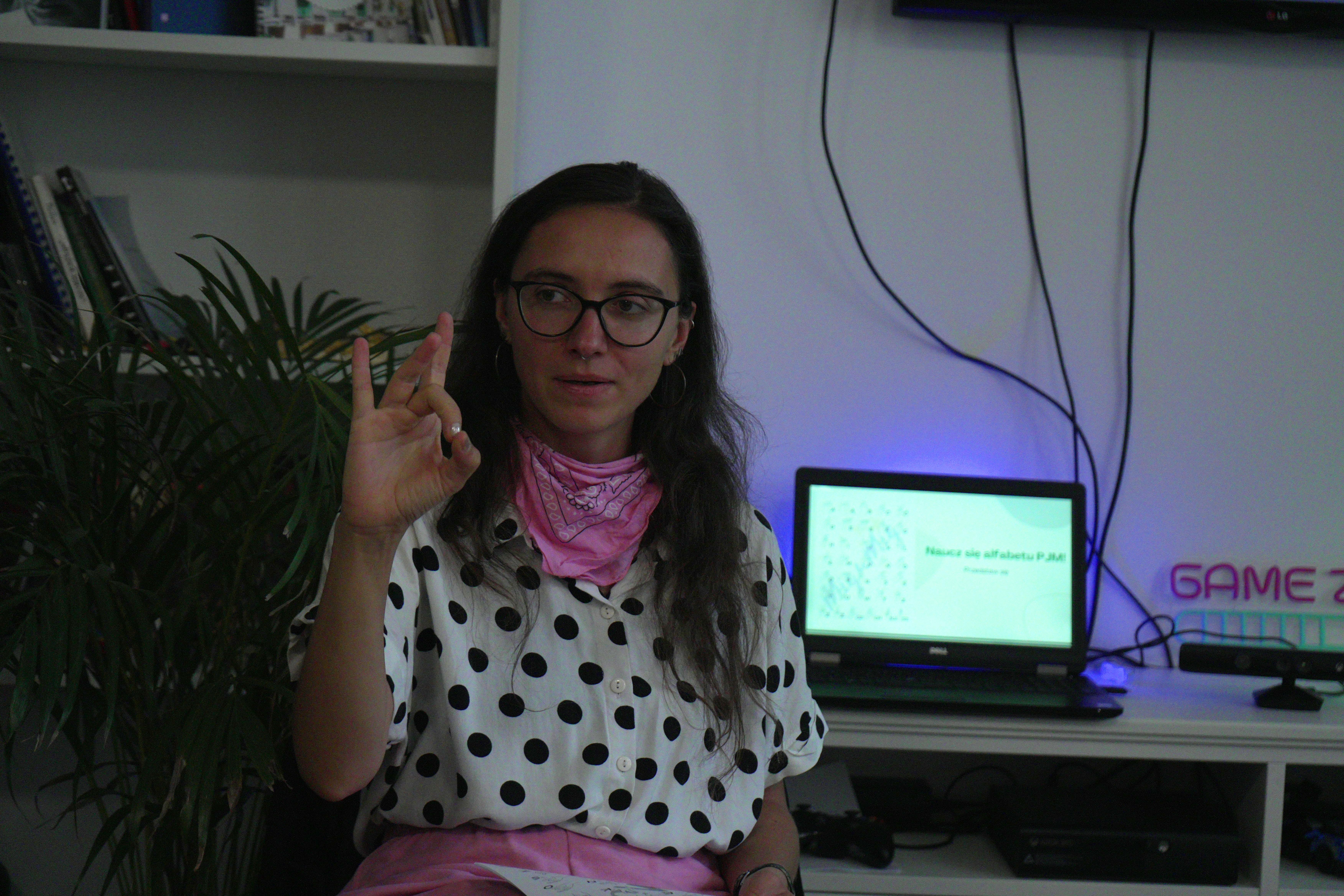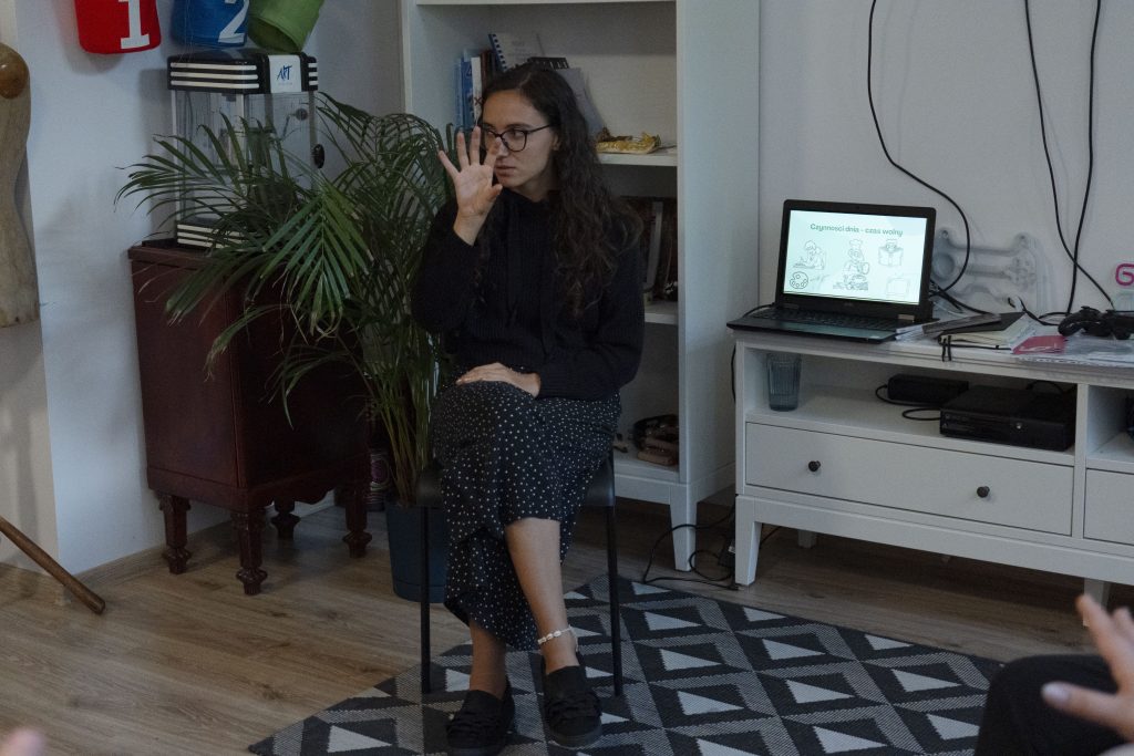 Warsztaty polskiego języka migowego Dominika Knap – animatorka kultury i edukatorka, która z pasją i cierpliwością wprowadzała uczestników w świat PJM. Dzięki jej zaangażowaniu każde spotkanie było nie tylko nauką, ale też inspirującą przestrzenią do wymiany doświadczeń.