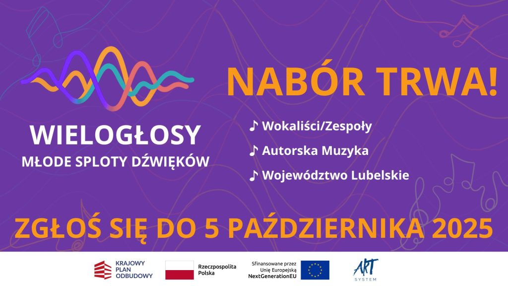 Otwieramy scenę dla młodych muzyków z Lubelszczyzny! Z radością ogłaszamy rekrutację do projektu Wielogłosy – Młode Sploty Dźwięków, który daje szansę zaprezentowania autorskiej twórczości przed publicznością i kamerami. Dzięki temu młodzi artyści mogą rozwinąć swoje muzyczne skrzydła oraz zdobyć cenne doświadczenie sceniczne.